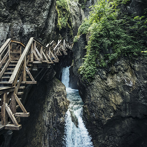 From 29 June to 31 August 2026 every Monday a very special, mystical and stunning night-time spectacle brings the Sigmund Thun Gorge to life. Parents and children alike look forward to a romantic, impressive adventure full of atmosphere when starting a guided hiking tour through the gorge on the Mystical Night of Water. Together we listen to the roaring of the water in the canyon, admire the strangely illuminated rocks and hike along the 340 m long wooden construction through the night – what a fantastic experience!
